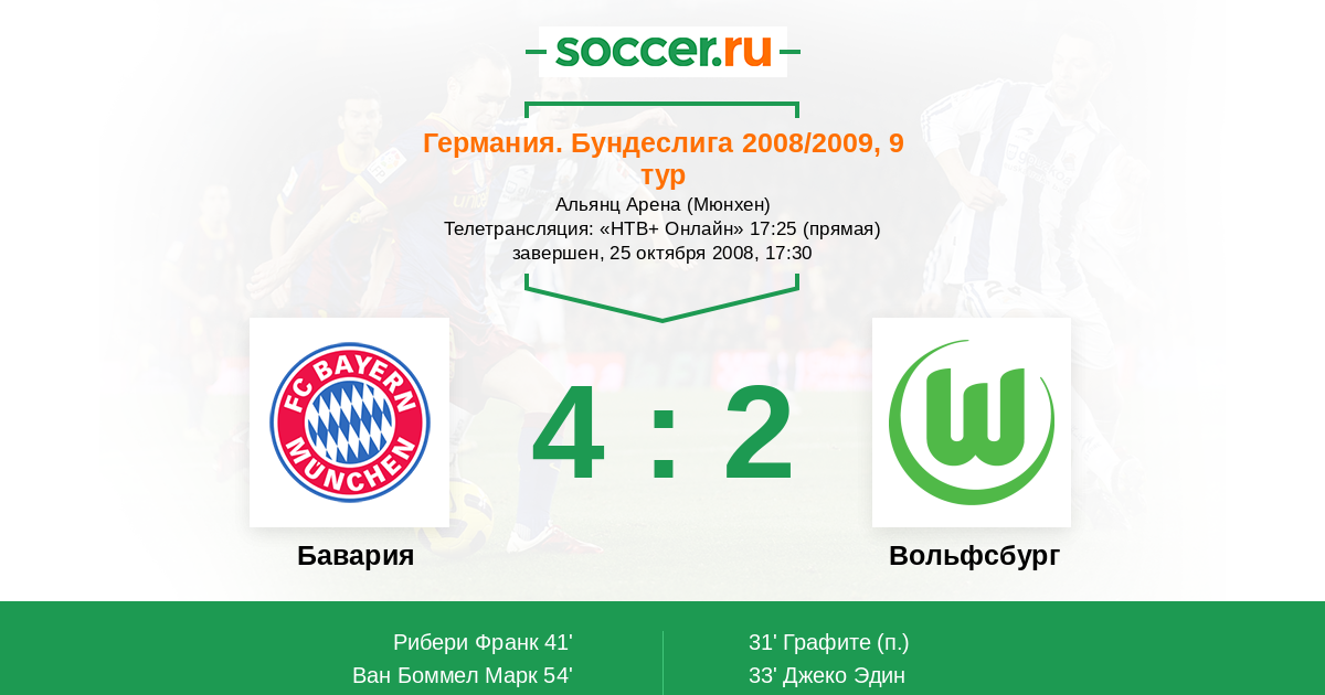 Протокол матча Бавария против Вольфсбург
