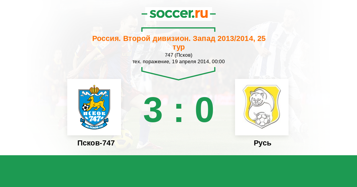 Россия. Вторая лига. Группа 2 31.05.2013 Русь Логотип футбольный клуб Русь (Санкт-Петербург) 2:2 Логотип футбольный клуб Псков-747 Псков-747
