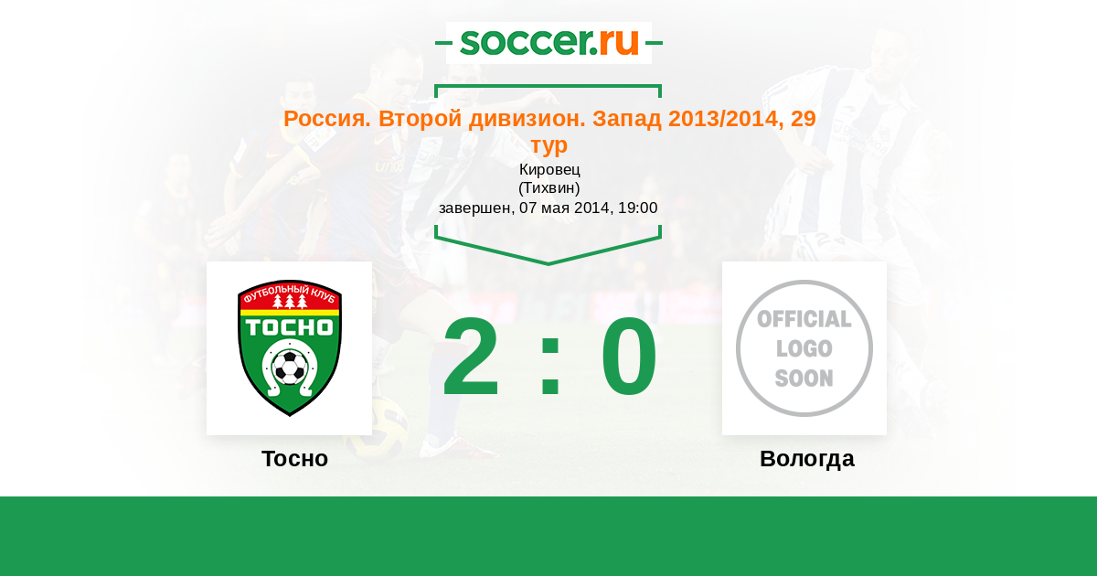 Россия. Вторая лига. Группа 2 07.05.2014 Тосно   2:0 Логотип футбольный клуб Вологда Вологда