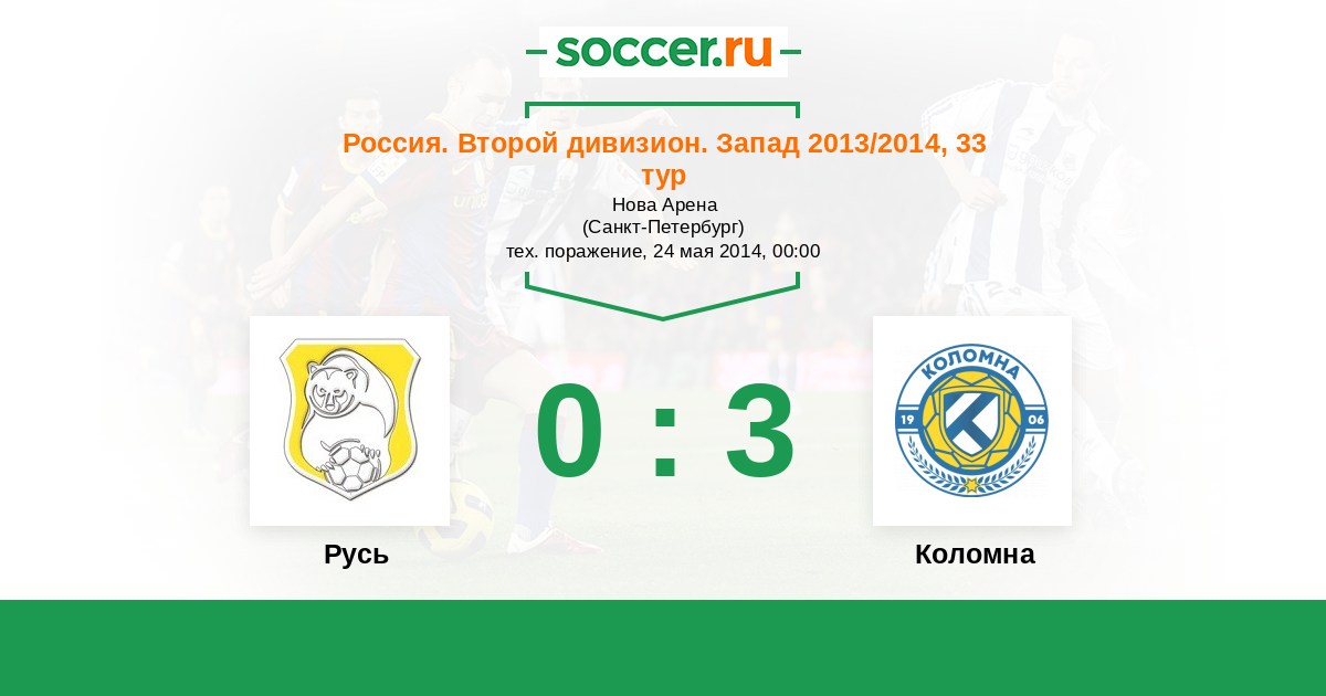 Россия. Вторая лига. Группа 2 24.05.2014 Русь Логотип футбольный клуб Русь (Санкт-Петербург) 0:3 Логотип футбольный клуб Коломна Коломна