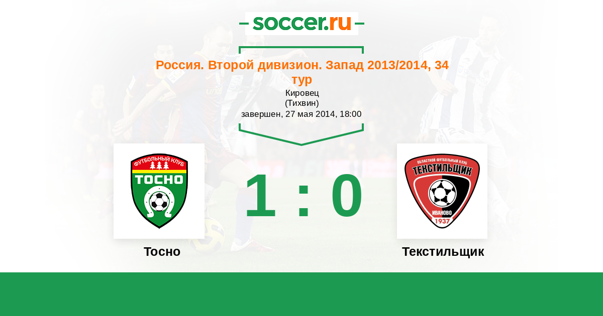 Россия. Вторая лига. Группа 2 27.07.2013 Текстильщик Логотип футбольный клуб Текстильщик (Иваново) 0:0 Логотип футбольный клуб Тосно Тосно