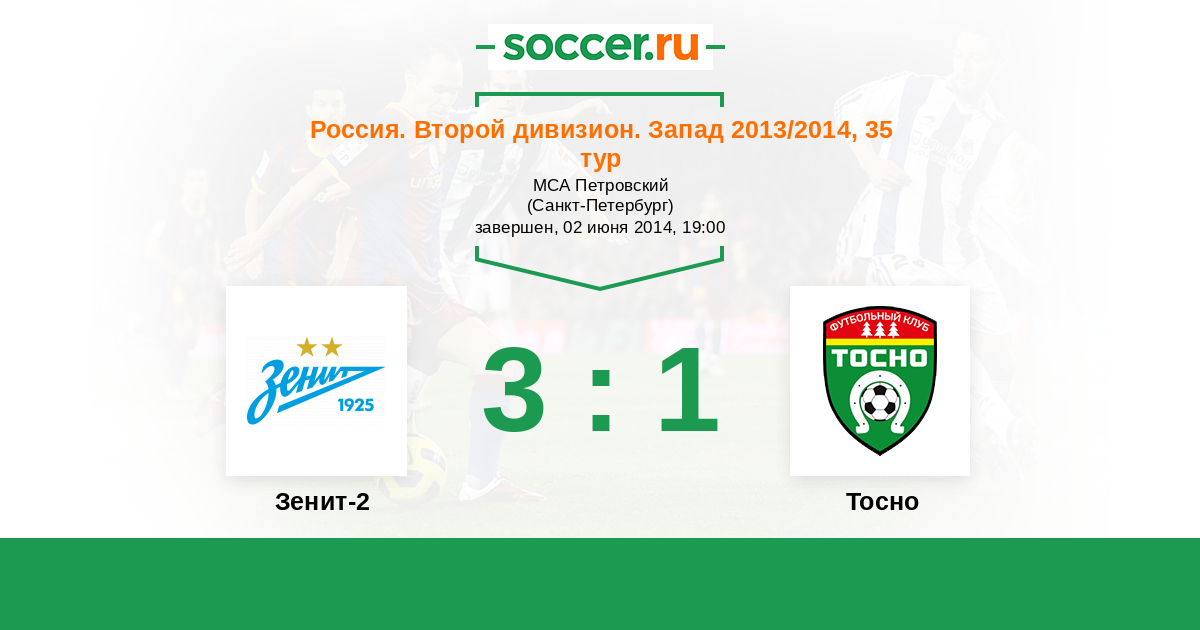 История матча Зенит-2 против Тосно