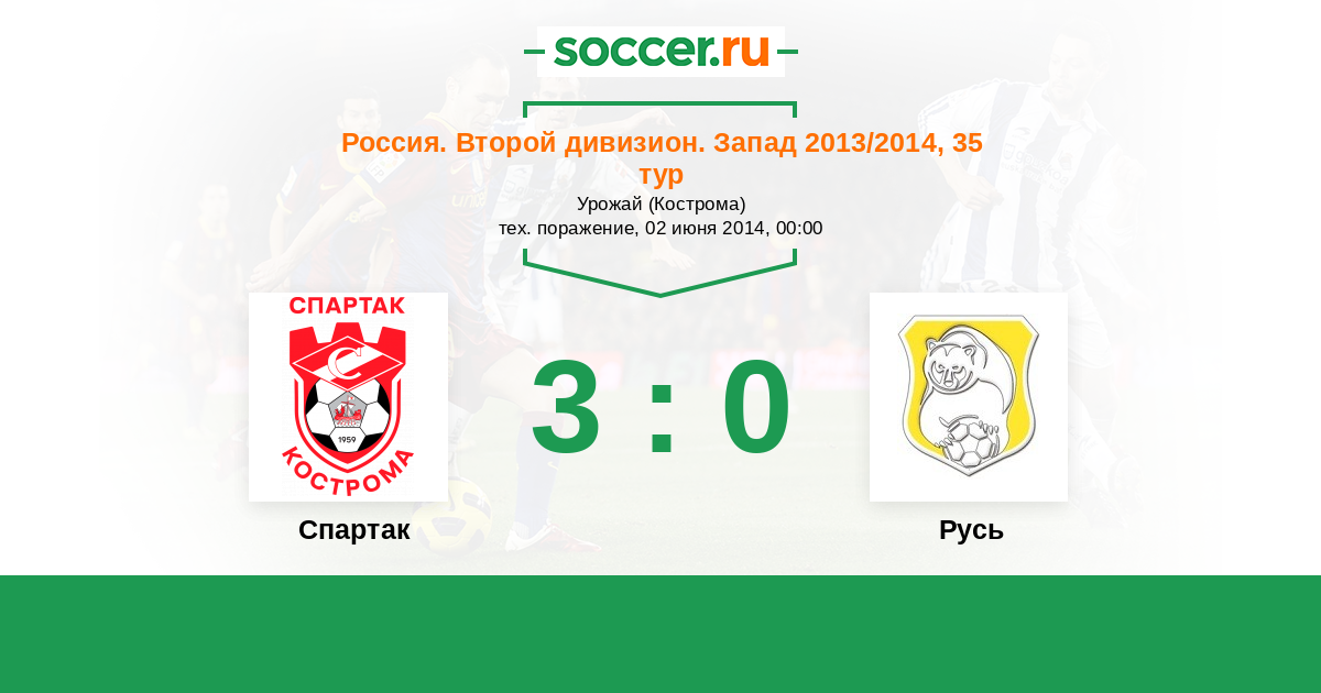 Россия. Вторая лига. Группа 2 02.06.2014 Спартак Кострома   3:0 Логотип футбольный клуб Русь (Санкт-Петербург) Русь
