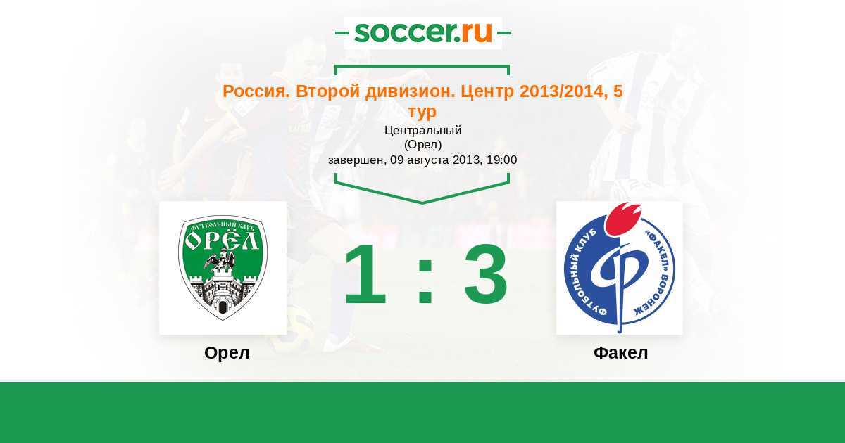 Россия. Вторая лига. Группа 3 28.10.2013 Факел Логотип футбольный клуб Факел (Воронеж) 1:1 Логотип футбольный клуб Орел Орел