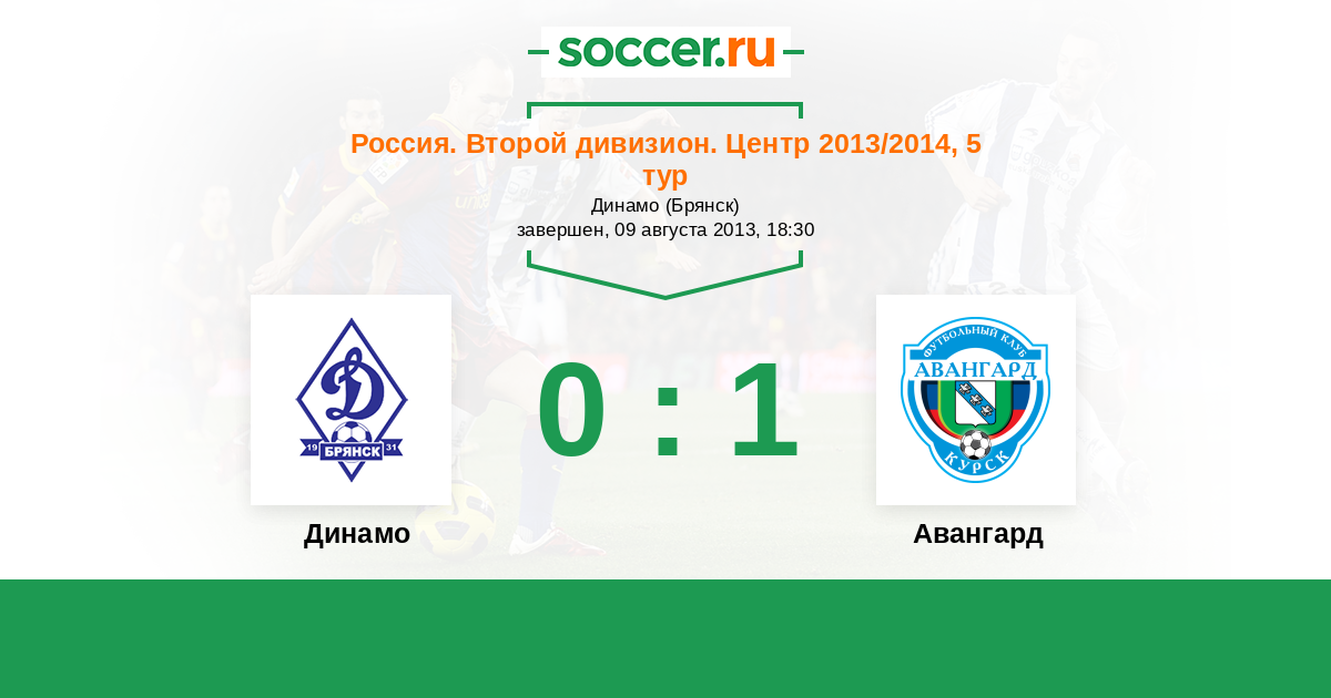 Россия. Вторая лига. Группа 3 28.08.2014 Авангард Логотип футбольный клуб Авангард (Курск) 1:2 Логотип футбольный клуб Динамо Брянск Динамо Брянск