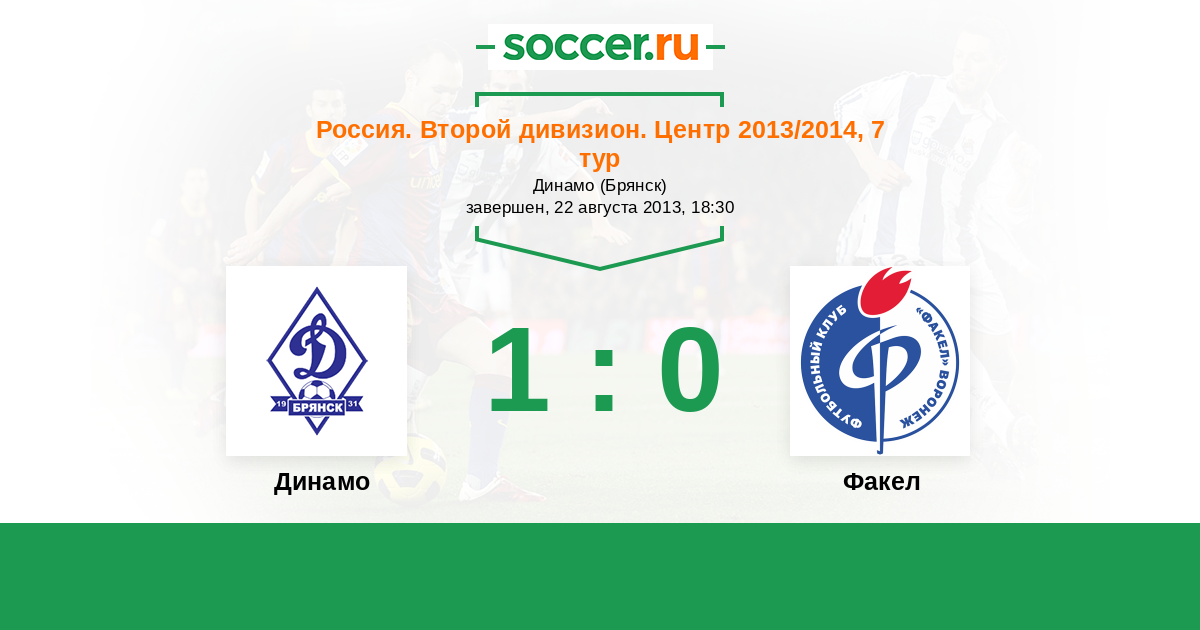Россия. Вторая лига. Группа 3 18.07.2014 Динамо Брянск Логотип футбольный клуб Динамо Брянск 1:3 Логотип футбольный клуб Факел (Воронеж) Факел