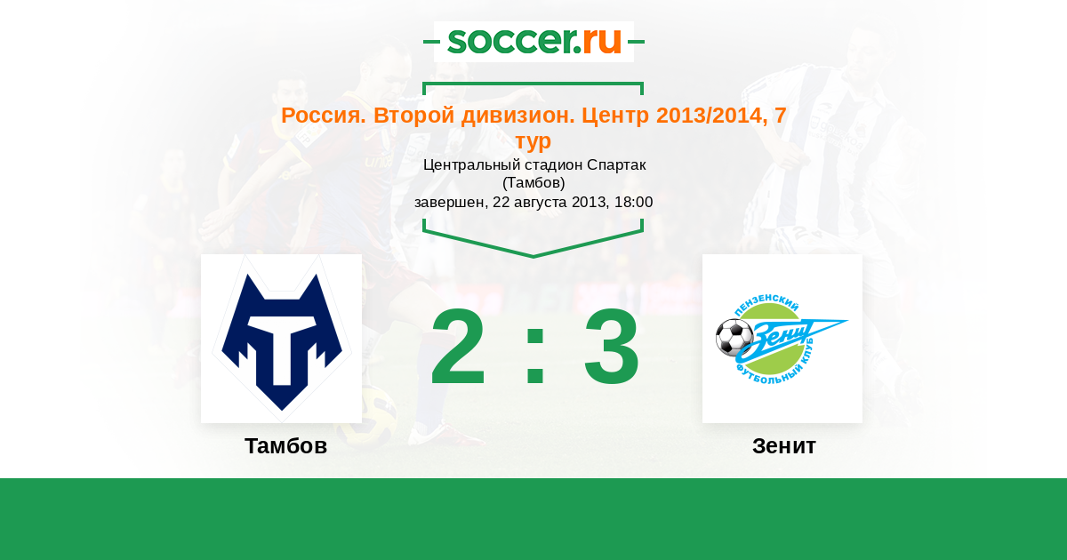 Россия. Вторая лига. Группа 3 16.08.2014 Тамбов Логотип футбольный клуб Тамбов 1:1 Логотип футбольный клуб Зенит (Пенза) Зенит