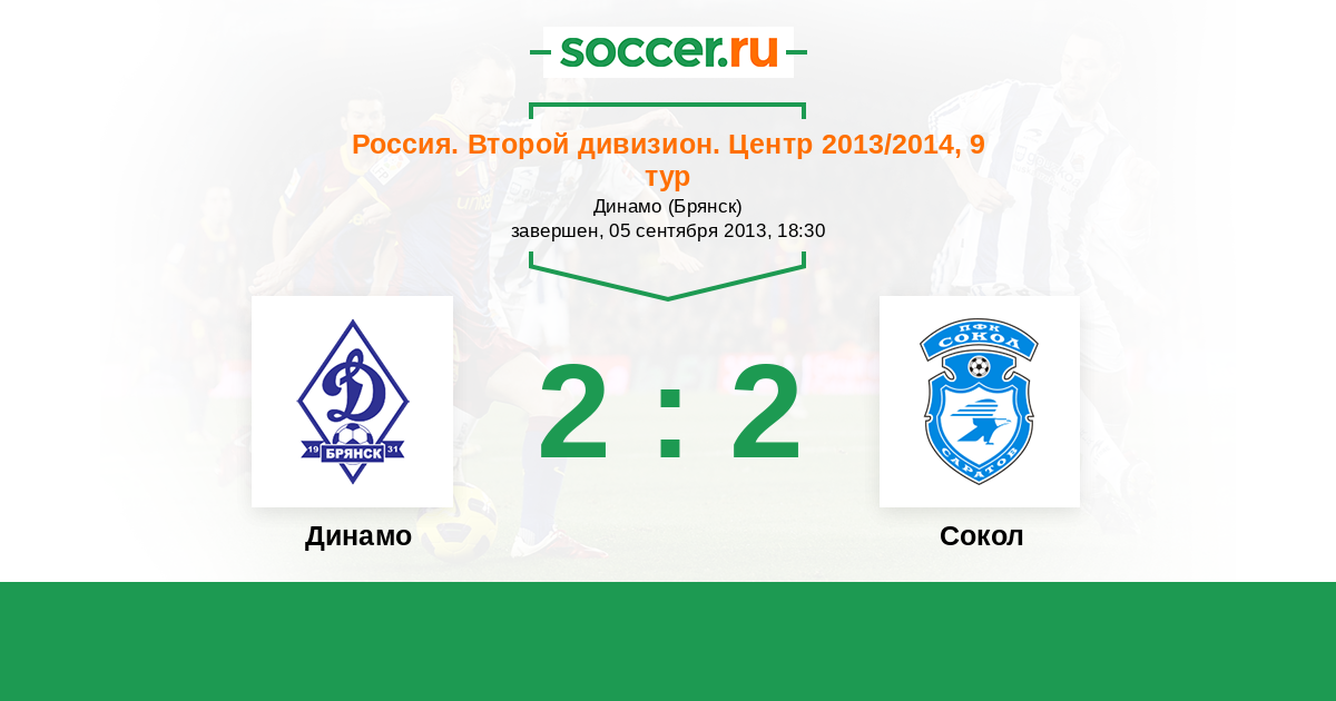 Россия. Вторая лига. Группа 3 26.04.2014 Сокол Логотип футбольный клуб Сокол (Саратов) 4:0 Логотип футбольный клуб Динамо Брянск Динамо Брянск