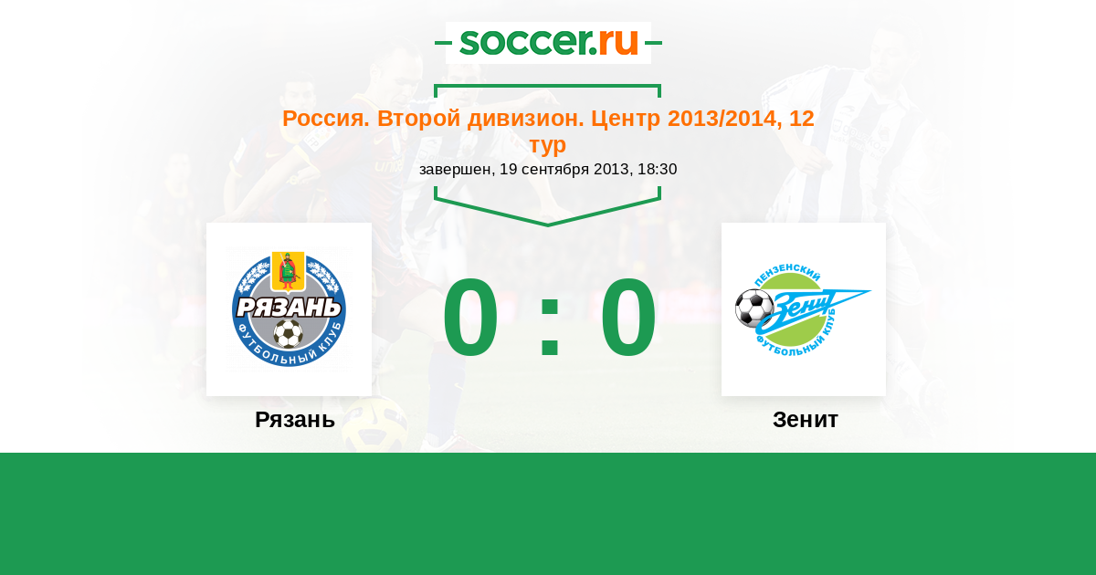 Россия. Вторая лига. Группа 3 29.09.2014 Рязань Логотип футбольный клуб Рязань 2:1 Логотип футбольный клуб Зенит (Пенза) Зенит