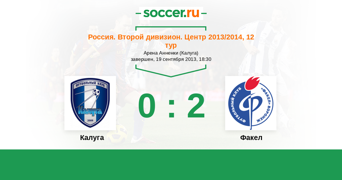 Россия. Вторая лига. Группа 3 09.09.2012 Факел Логотип футбольный клуб Факел (Воронеж) 3:2 Логотип футбольный клуб Калуга Калуга