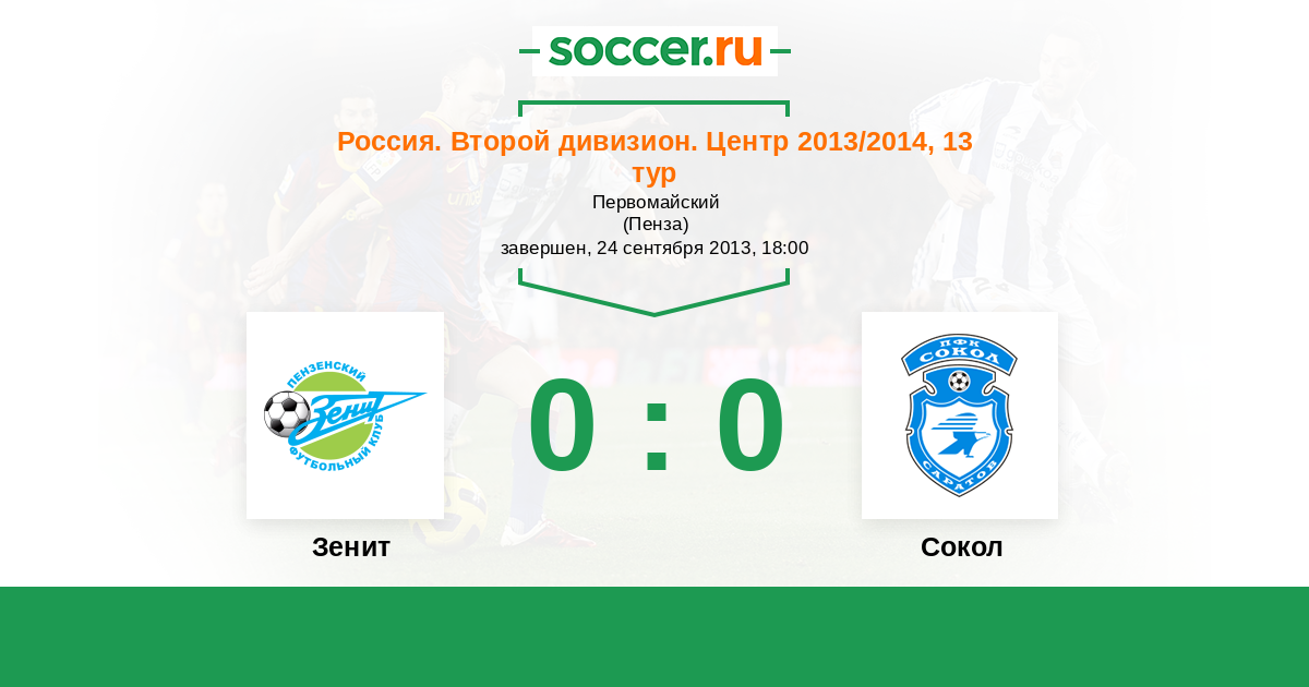 Россия. Вторая лига. Группа 3 09.09.2012 Сокол Логотип футбольный клуб Сокол (Саратов) 1:1 Логотип футбольный клуб Зенит (Пенза) Зенит