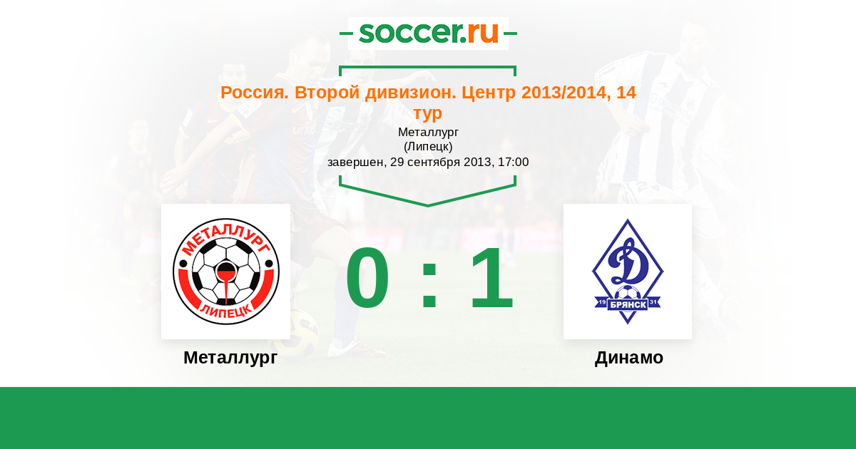 Россия. Вторая лига. Группа 3 25.05.2014 Динамо Брянск Логотип футбольный клуб Динамо Брянск 2:1 Логотип футбольный клуб Металлург (Липецк) Металлург