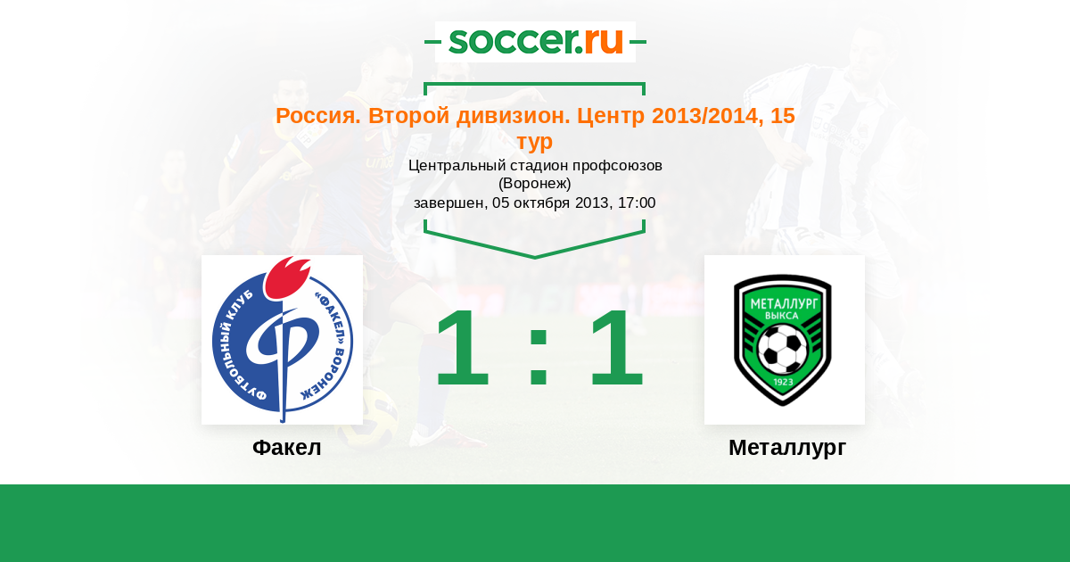 Россия. Вторая лига. Группа 3 30.09.2012 Факел Логотип футбольный клуб Факел (Воронеж) 2:1 Логотип футбольный клуб Металлург (Выкса) Металлург