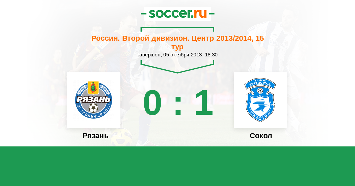 Россия. Вторая лига. Группа 3 09.09.2018 Рязань Логотип футбольный клуб Рязань 0:1 Логотип футбольный клуб Сокол (Саратов) Сокол