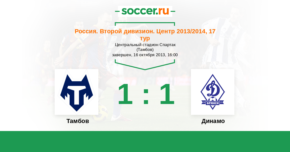 Россия. Вторая лига. Группа 3 23.09.2014 Тамбов Логотип футбольный клуб Тамбов 3:2 Логотип футбольный клуб Динамо Брянск Динамо Брянск
