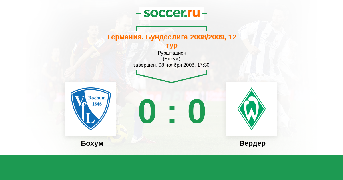 Протокол матча Бохум против Вердер