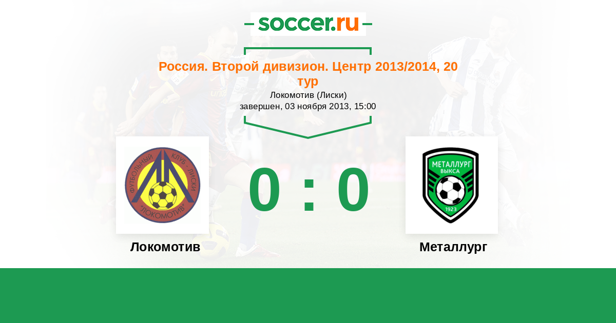Россия. Вторая лига. Группа 3 11.10.2014 Металлург Логотип футбольный клуб Металлург (Выкса) 0:2 Логотип футбольный клуб Локомотив (Лиски) Локомотив