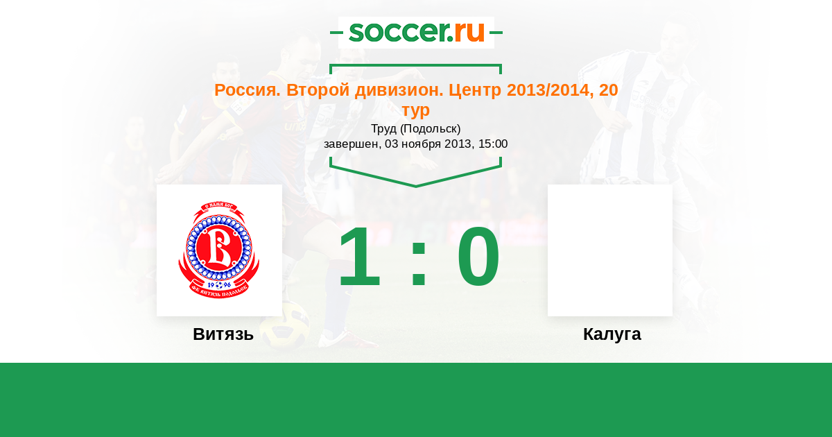 Россия. Вторая лига. Группа 3 17.08.2013 Калуга Логотип футбольный клуб Калуга 1:1 Логотип футбольный клуб Витязь (Подольск) Витязь