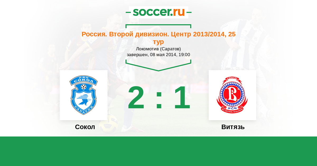 Россия. Вторая лига. Группа 3 14.09.2013 Витязь Логотип футбольный клуб Витязь (Подольск) 4:2 Логотип футбольный клуб Сокол (Саратов) Сокол