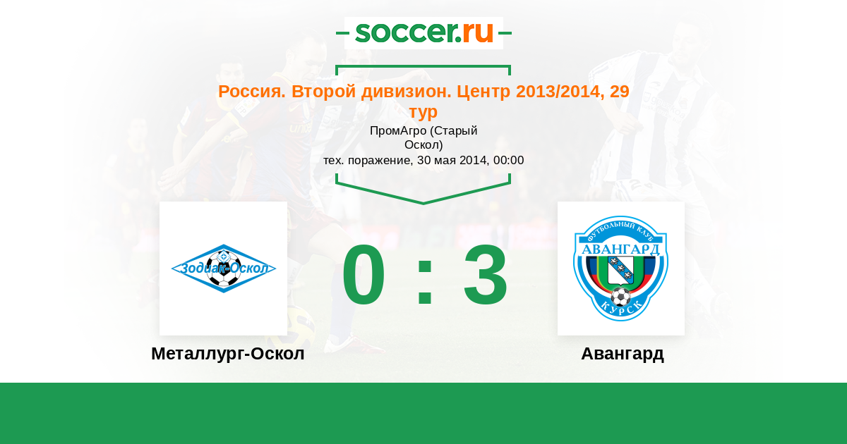 Россия. Вторая лига. Группа 3 30.05.2014 Металлург-Оскол Логотип футбольный клуб Металлург-Оскол (Старый Оскол) 0:3 Логотип футбольный клуб Авангард (Курск) Авангард