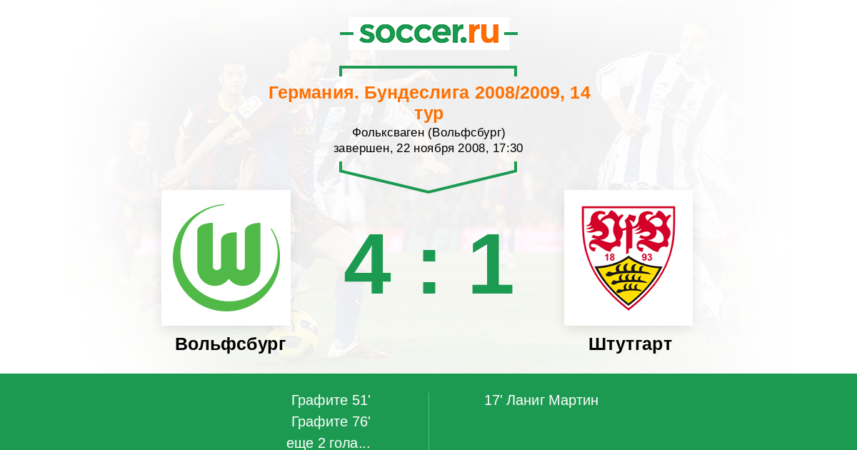 Протокол матча Вольфсбург против Штутгарт