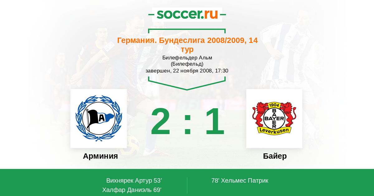 Протокол матча Арминия против Байер