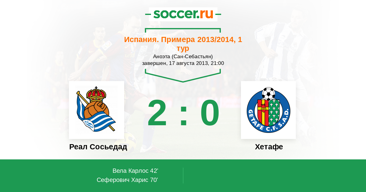 Протокол матча Реал Сосьедад против Хетафе