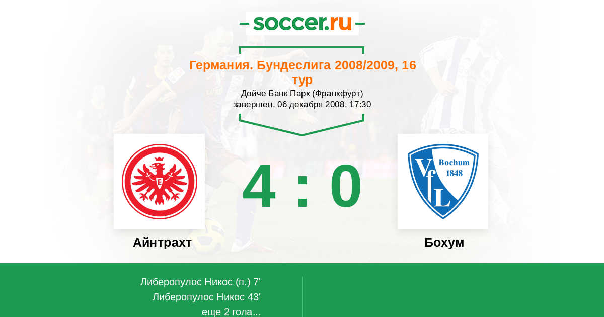 Протокол матча Айнтрахт против Бохум