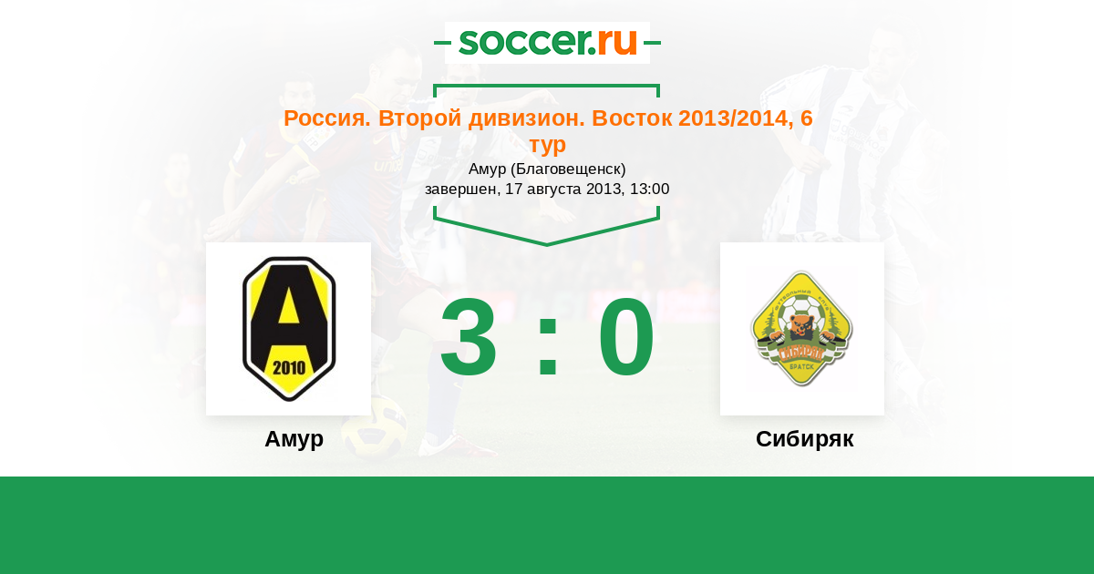 Россия. 2-й дивизион. Восток 05.10.2013 Сибиряк Логотип футбольный клуб Сибиряк (Братск) 1:2 Логотип футбольный клуб Амур  (Благовещенск) Амур