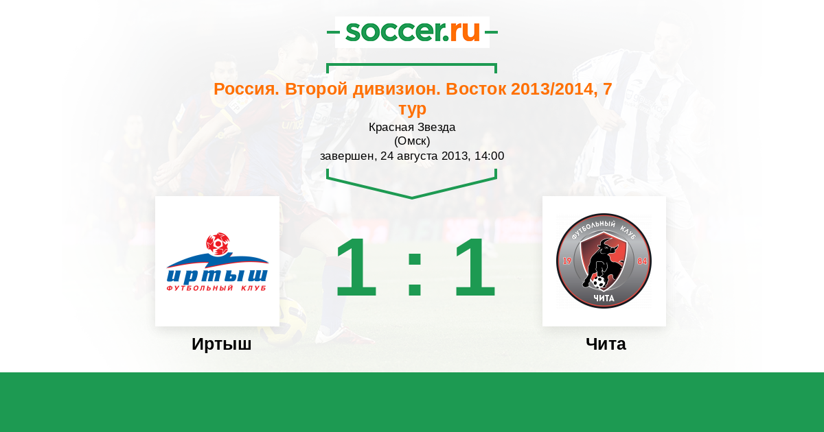 Россия. 2-й дивизион. Восток 13.08.2014 Иртыш Логотип футбольный клуб Иртыш (Омск) 3:1 Логотип футбольный клуб Чита Чита