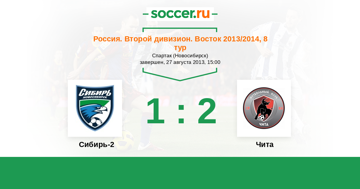 Россия. 2-й дивизион. Восток 10.08.2014 Сибирь-2 Логотип футбольный клуб Сибирь-2 (Новосибирск) 2:3 Логотип футбольный клуб Чита Чита