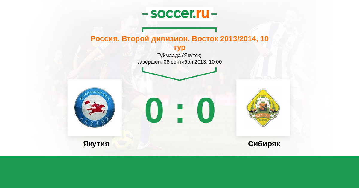 Россия. 2-й дивизион. Восток 17.09.2013 Сибиряк Логотип футбольный клуб Сибиряк (Братск) 1:1 Логотип футбольный клуб Якутия (Якутск) Якутия