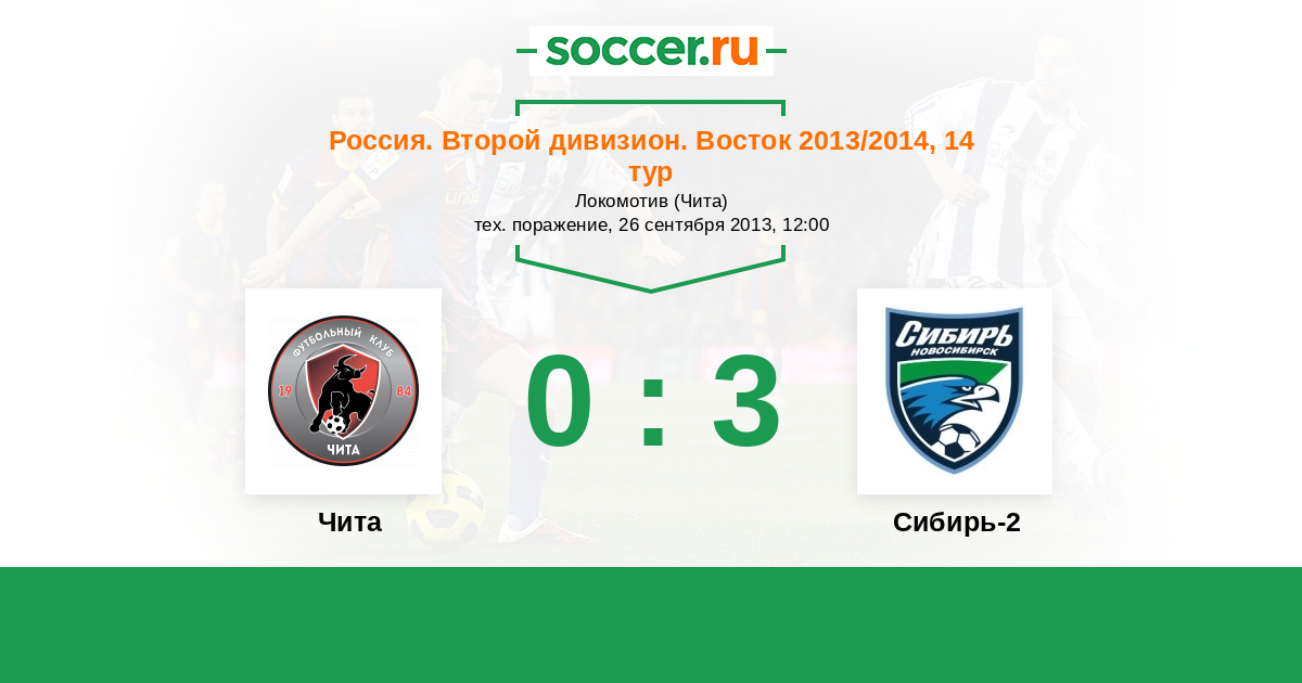 Россия. 2-й дивизион. Восток 27.08.2013 Сибирь-2 Логотип футбольный клуб Сибирь-2 (Новосибирск) 1:2 Логотип футбольный клуб Чита Чита
