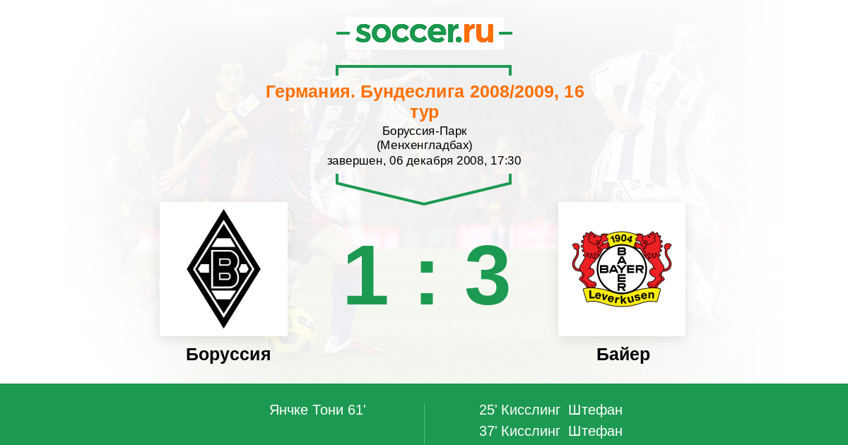 Протокол матча Боруссия против Байер