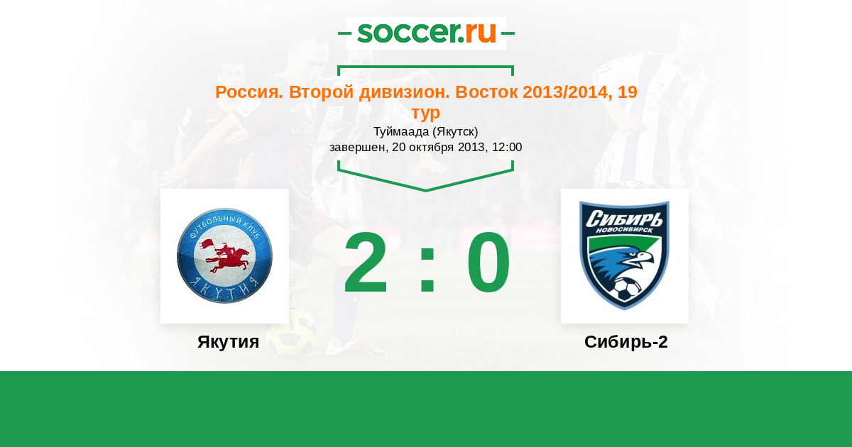 Россия. 2-й дивизион. Восток 13.10.2014 Сибирь-2 Логотип футбольный клуб Сибирь-2 (Новосибирск) 2:1 Логотип футбольный клуб Якутия (Якутск) Якутия