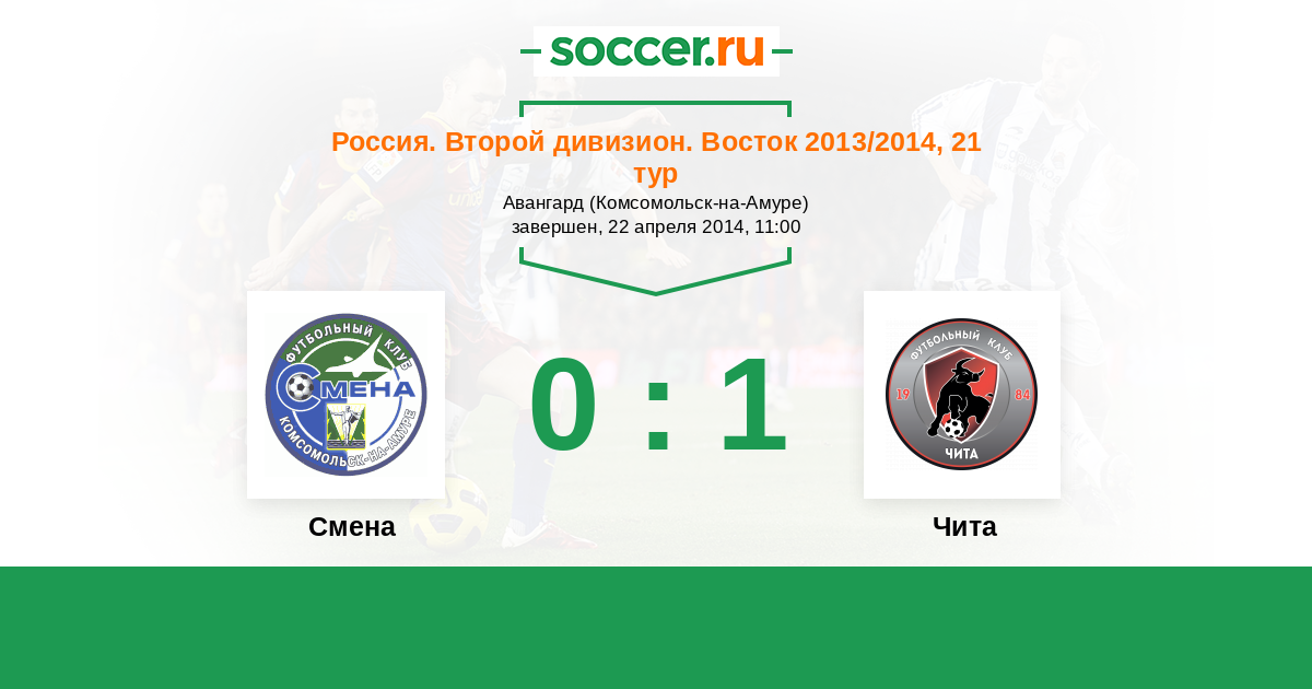 Россия. 2-й дивизион. Восток 03.09.2014 Смена Логотип футбольный клуб Смена (Комсомольск-на-Амуре) 1:1 Логотип футбольный клуб Чита Чита