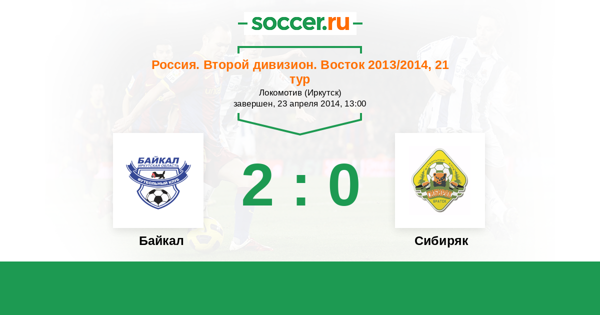 Россия. 2-й дивизион. Восток 23.04.2014 Байкал   2:0 Логотип футбольный клуб Сибиряк (Братск) Сибиряк