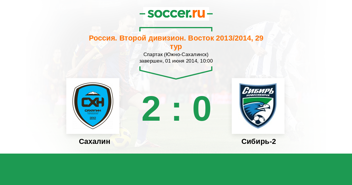 Россия. 2-й дивизион. Восток 14.09.2013 Сибирь-2 Логотип футбольный клуб Сибирь-2 (Новосибирск) 0:3 Логотип футбольный клуб Сахалин (Южно-Сахалинск) Сахалин