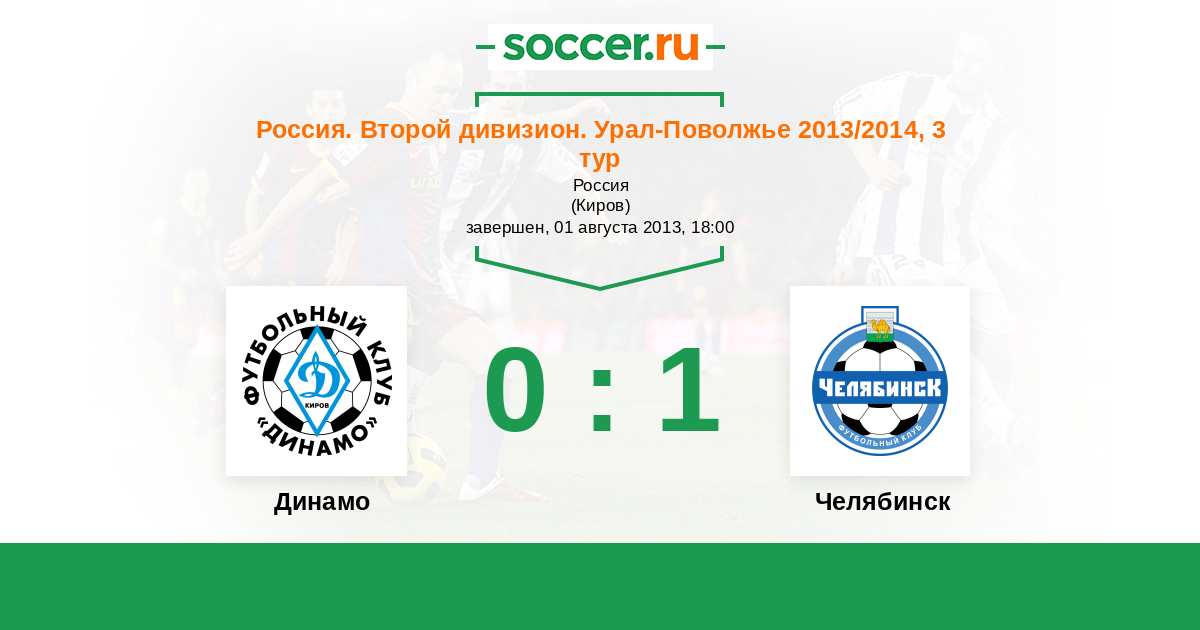 Россия. Вторая лига. Группа 4 29.09.2013 Челябинск Логотип футбольный клуб Челябинск 0:0 Логотип футбольный клуб Динамо Киров Динамо Киров
