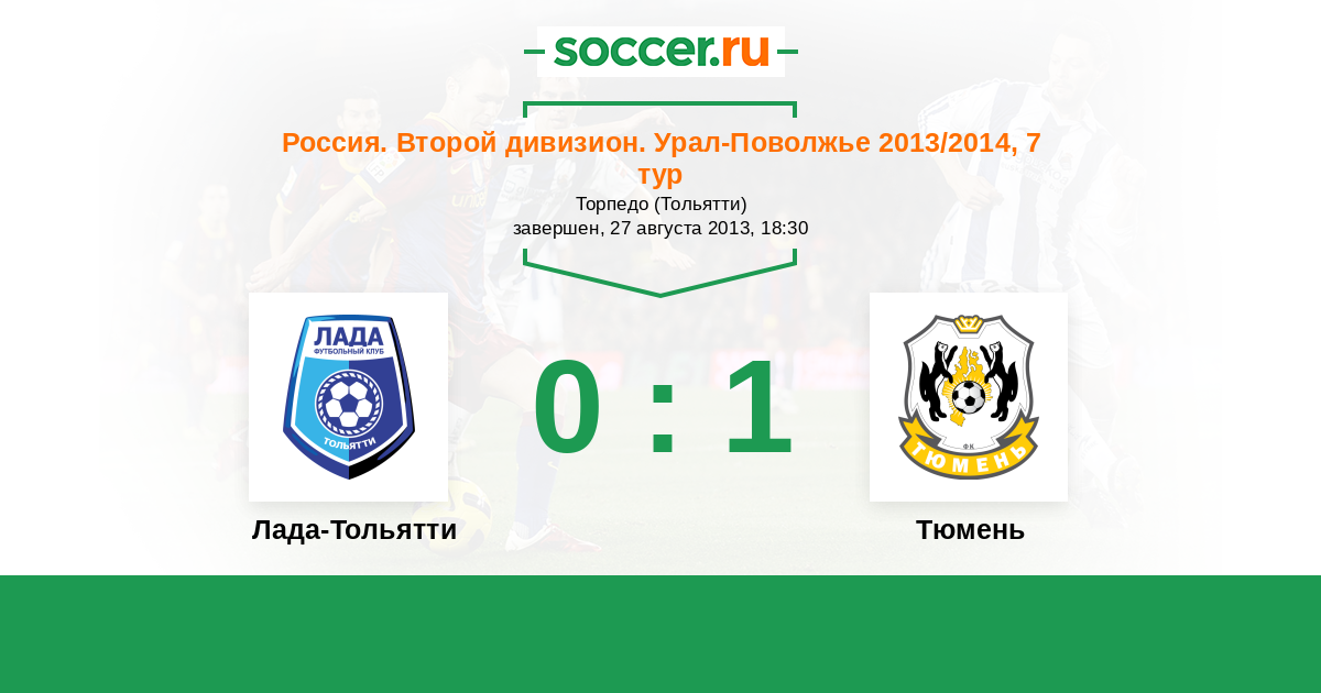 Россия. Вторая лига. Группа 4 16.09.2012 Лада-Тольятти Логотип футбольный клуб Лада-Тольятти 1:0 Логотип футбольный клуб Тюмень Тюмень