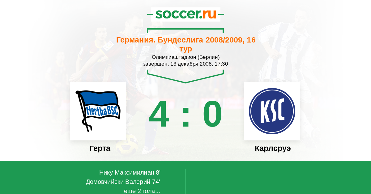 Протокол матча Герта против Карлсруэ