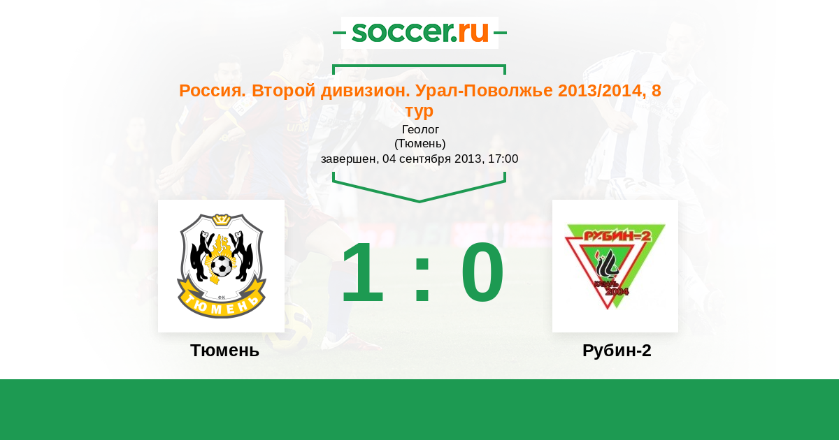 Россия. Вторая лига. Группа 4 02.06.2013 Тюмень Логотип футбольный клуб Тюмень 2:0 Логотип футбольный клуб Рубин-2 (Казань) Рубин-2
