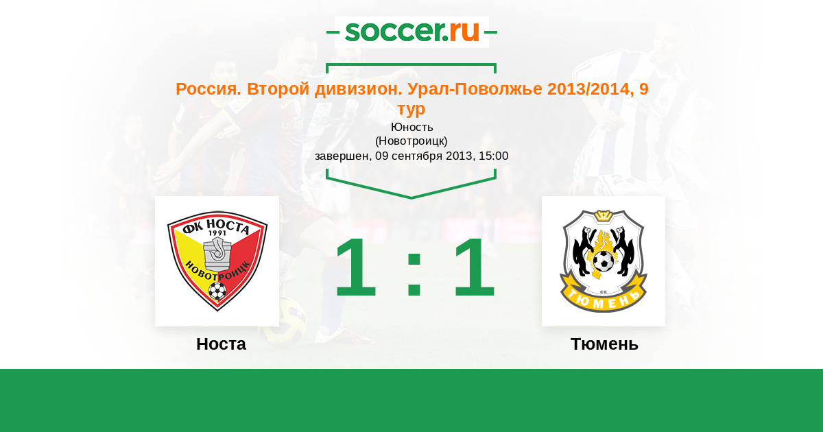 Россия. Вторая лига. Группа 4 15.09.2011 Носта Логотип футбольный клуб Носта (Новотроицк) 0:1 Логотип футбольный клуб Тюмень Тюмень