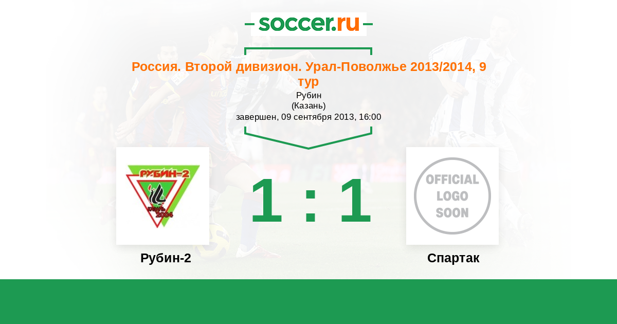 Россия. Вторая лига. Группа 4 07.09.2014 Рубин-2 Логотип футбольный клуб Рубин-2 (Казань) 4:2 Логотип футбольный клуб Спартак (Йошкар-Ола) Спартак