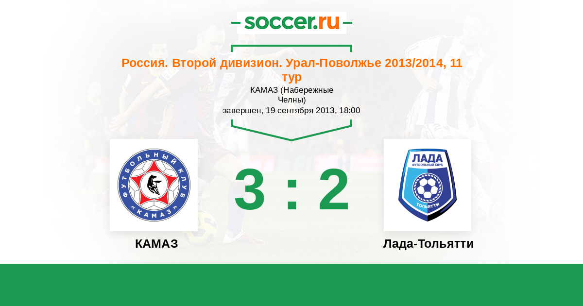 Россия. Вторая лига. Группа 4 16.10.2014 КАМАЗ Логотип футбольный клуб КАМАЗ (Набережные Челны) 3:0 Логотип футбольный клуб Лада-Тольятти Лада-Тольятти