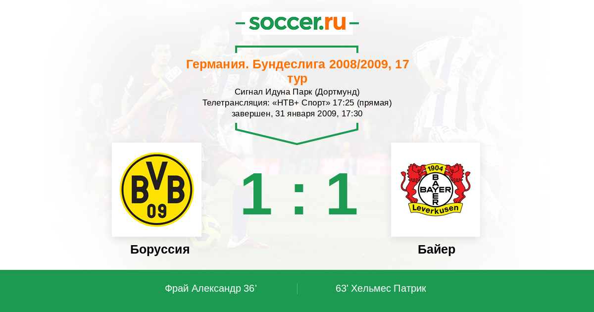 Протокол матча Боруссия против Байер