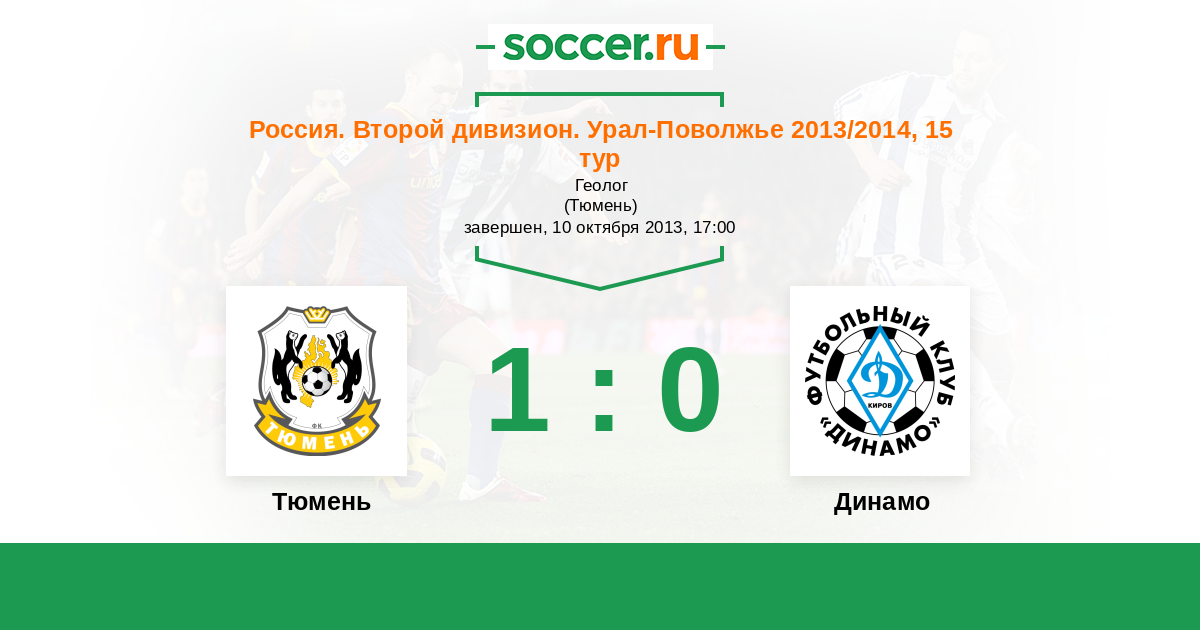 Россия. Вторая лига. Группа 4 13.08.2013 Динамо Киров Логотип футбольный клуб Динамо Киров 1:0 Логотип футбольный клуб Тюмень Тюмень