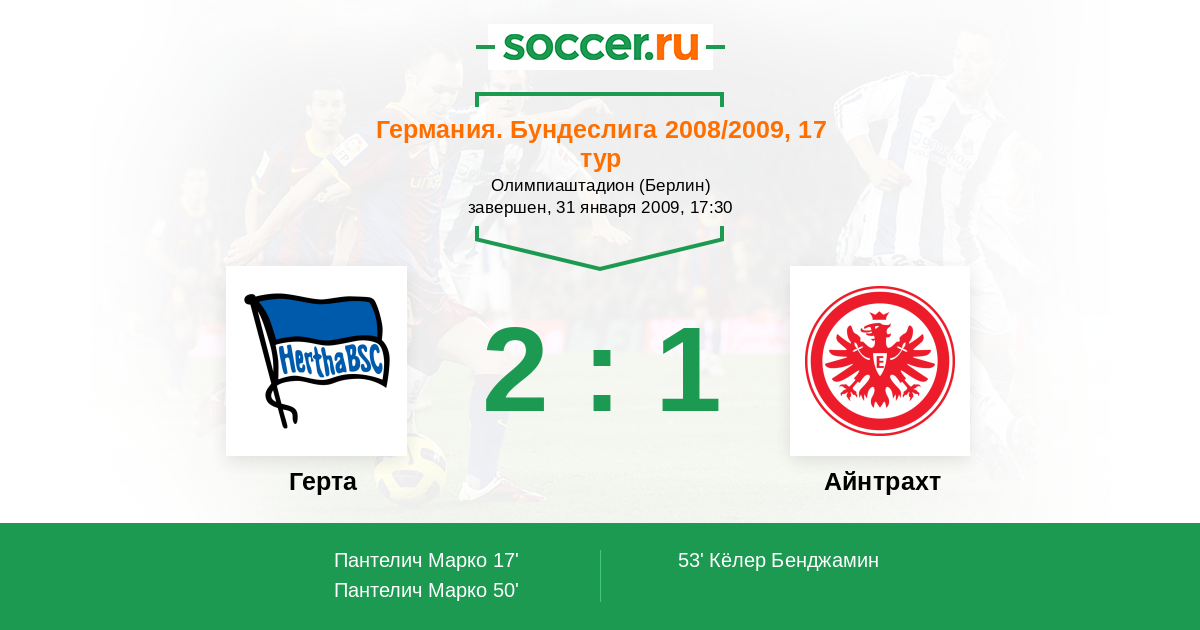 Протокол матча Герта против Айнтрахт