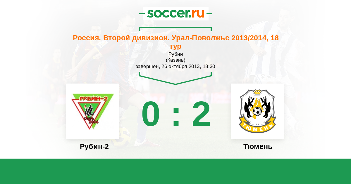 Россия. Вторая лига. Группа 4 02.06.2013 Тюмень Логотип футбольный клуб Тюмень 2:0 Логотип футбольный клуб Рубин-2 (Казань) Рубин-2