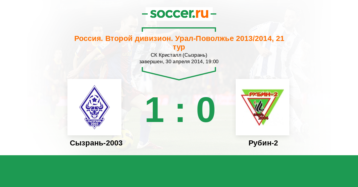 Россия. Вторая лига. Группа 4 19.09.2013 Рубин-2 Логотип футбольный клуб Рубин-2 (Казань) 1:1 Логотип футбольный клуб Сызрань-2003 Сызрань-2003
